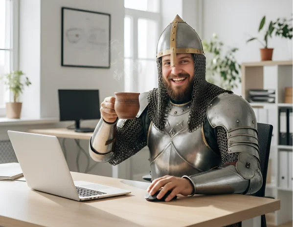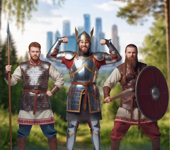 Объявите конкурс сказочных образов: шлемы из фольги, бороды из ваты, плащи, картонные мечи. Заранее подготовьте примеры образов и разошлите их богатырям в виде шуточных свитков-вдохновений. За день до праздника организуйте «мастерскую героев» — стол с материалами, где можно потренироваться и собрать заготовки. В день мероприятия помогайте дружине довести образы до совершенства — закрепить детали и добавить финальные штрихи!